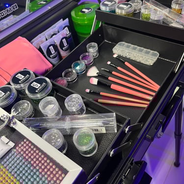¡Agrega un toque de magia y glamour a tu evento con nuestro exclusivo servicio de maquillaje con glitter! Perfecto para fiestas, bodas, festivales, y cualquier celebración donde quieras destacar y brillar, nuestro servicio ofrece una experiencia de maquillaje que deslumbrará a todos.